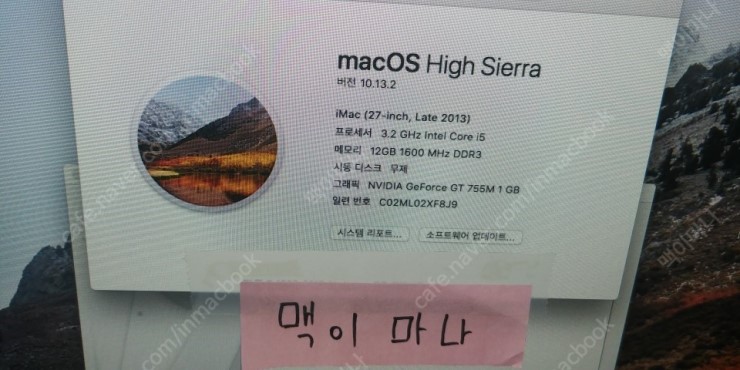아이맥 27인치 2013 (i5/ssd128+HDD1000G/ram12G/GTX755M) 팜