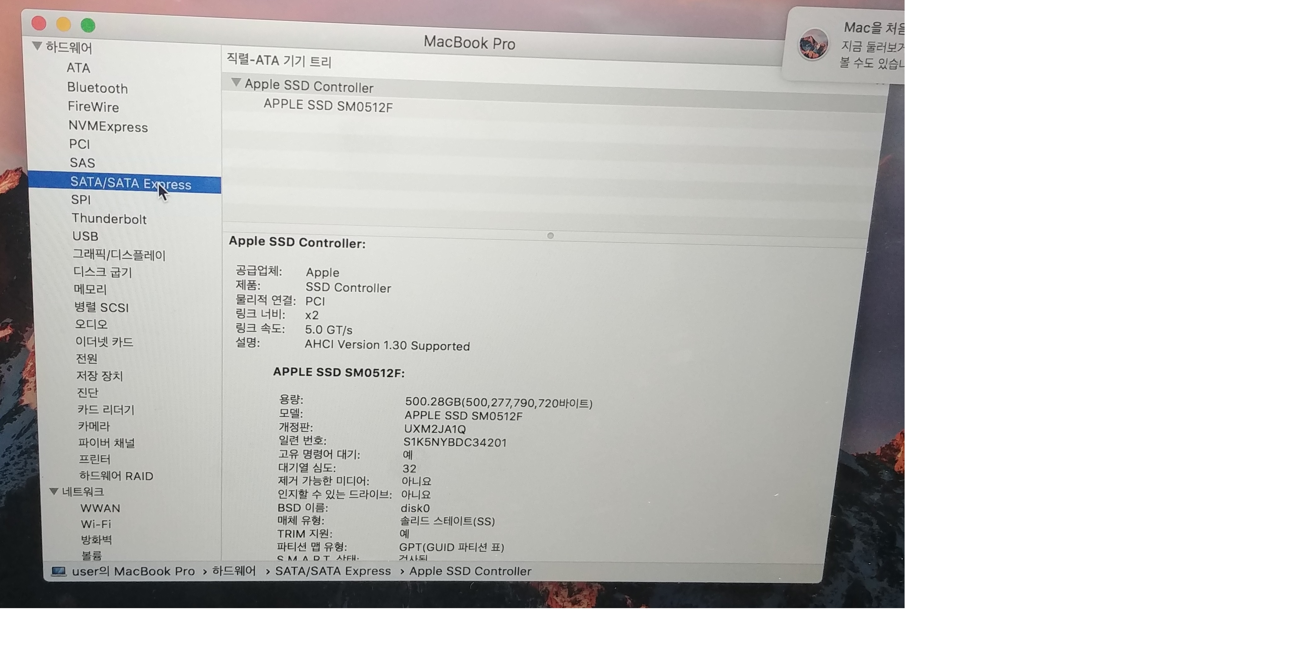 구매했던 스펙 그대로 입니다.