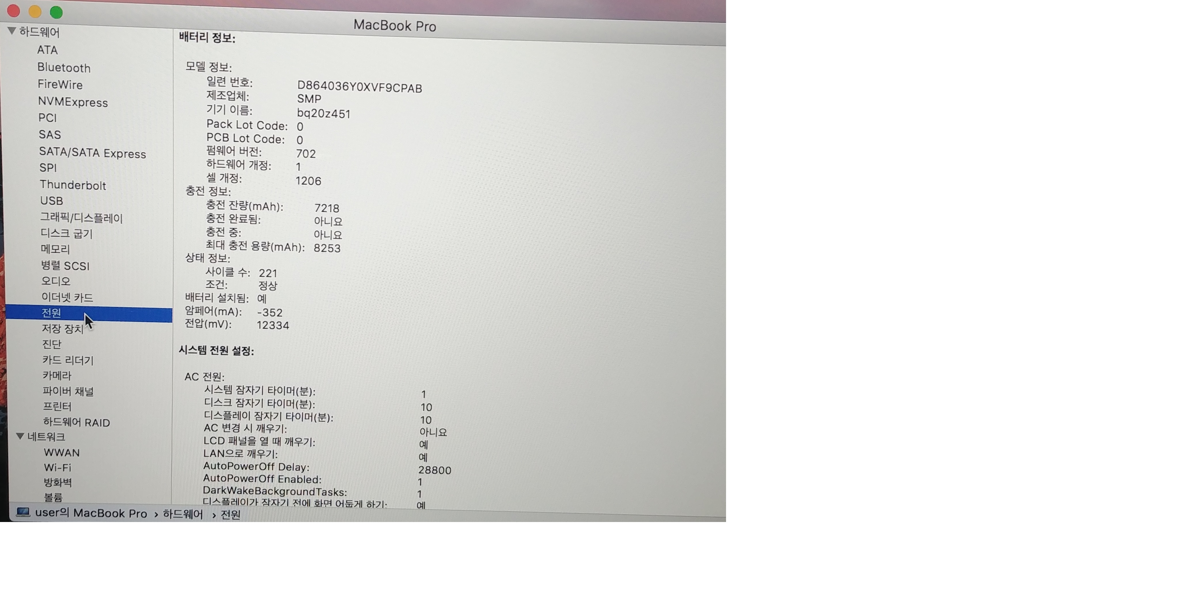 싸이클 221 최대충전용량 8253
