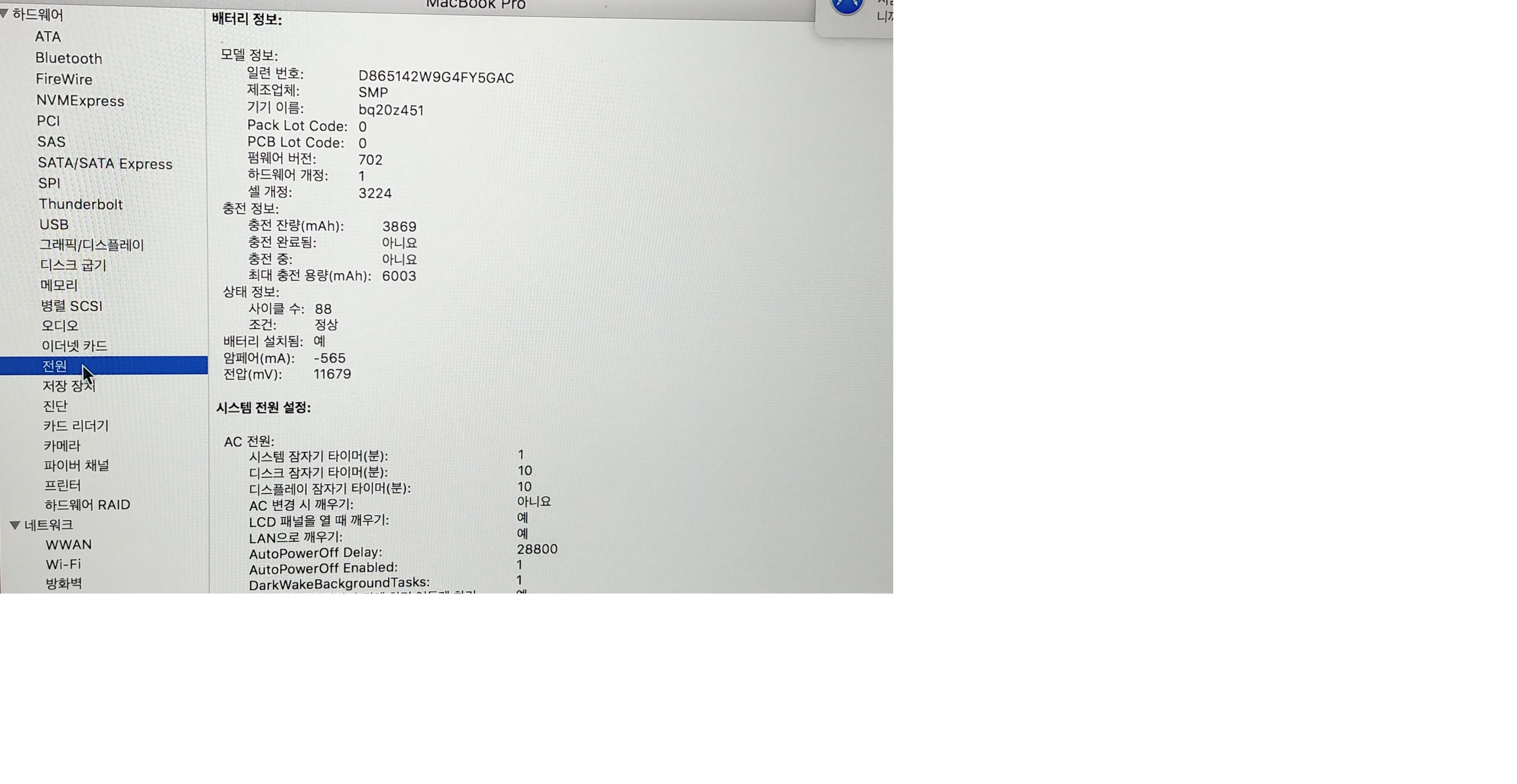 사이클 수 88  최대충전용량 6003