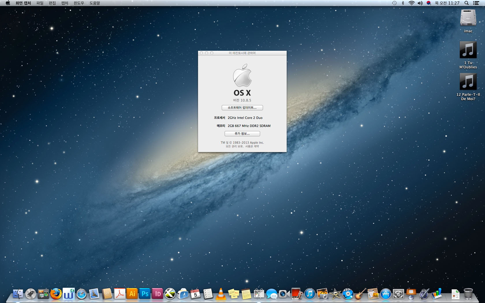 맥os 마운틴라이언과 프로그램까지 다 설치되어있는 상태최상인 아이맥입니다