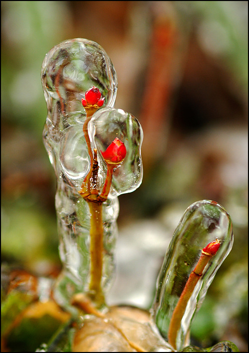봄소식을 전하러 나왔다가 동장군을 만나 갇혀버린 어린꽃망울 날씨가 풀리면